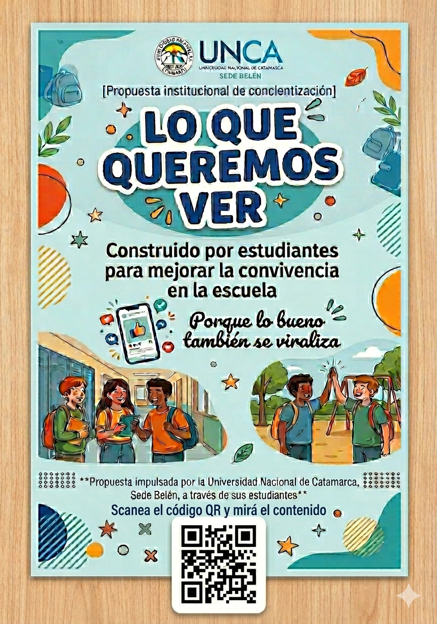 Bajo la premisa de fomentar entornos educativos más saludables, la Universidad Nacional de Catamarca – Sede Belén impulsó recientemente el proyecto titulado “Lo que sí queremos ver”. Esta iniciativa surgió con el propósito de dar respuesta a las problemáticas de conductas virales en las escuelas, priorizando un abordaje participativo y positivo.